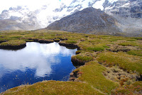 In the morning, we decided to stick around a bit more and walked to the nearby Laguna Solteracocha (soltera meaning being single and when fanny jokingly explained to us that traveling to this Laguna means we will now always be single, we immediately wanted to part! ) . We than walked to the nearest glacier, a marvelous view of cavernous ice surrounded by a diversity of colorful rocks. That was the first time we had seen an Avalanche, a sight too magnificent to believe: a huge mass cloud of ice sliding down the mountain accompanied by the sound of a falling giant! The sight and sound made our hearts beat faster and louder as well. After that we made our way back to the camp, packed and started a long climb towards the village of LIamac , our starting and ending point.