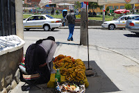 de días salíamos al mercado para comprar verduras, frutas, y cualquier necesidad alimentaría. Las frutas en su gran diversidad están de lado a lado por las calles de Sagurnaga y Murillo. Allí las naranjas, papayas, sandía, palta (aguacate), higos, cebollas y ajos tienen un reinado cada uno mientras que la reina vendedora despacha. Estábamos antojadas de jugo de naranja y decidimos ir a comprar las frutas frescas. Le pregunte a la dueña “Cu