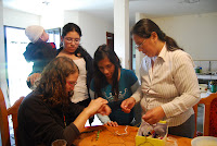 Y nuestra admiración por esta gran persona se incremento aun mas (ya nos sentíamos tan afortunadas de poder escuchar todo lo que nos había compartido), cuando nos conto sobre sus experiencias con violencia. ¨Yo soy una persona No violenta porque viví mucha violencia. Así ya como dos años tuve un incidente de violación. Un día, unos tipos entraron en nuestra casa, se robaron todo, y nos violaron, fue muy feo… Yo me morí en el momento en que pasaba esto. Me desconecté. Después de esto yo no sentí la culpa que supuestamente tenia que sentir, cuando te violan supuestamente te tienes que sentir muy culpable, sentirte sucia y sentir que tu cuerpo y no se que. Pero yo no sentía eso… Sentía una frustración de no haber podido hacer nada, ¿había sido correcto que yo me haya muerto en esos momentos, o tenia que haber luchado por mi?... ¡Pero yo no sentía vergüenza! Lo que no me gusta es producir Pena. La pena a mi me pone mal. Lo que yo quise hacer después de esto es organizar una fiesta de Sanación para contar lo que había pasado y organizamos ¡una gran fiesta! …Di mi testimonio y dije que no quería ser victima, que ya me habían violado y eso era suficiente! Cuando di mi testimonio yo sentía que la gente había entendido lo que había pasado. Ese acto de sanación pública me permitió seguir en la vida aceptando que más allá de la estadística tuve la posibilidad de denunciar públicamente el tema de la No vergüenza¨.