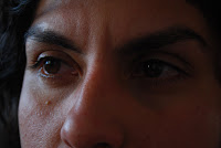 Violeta, tears running down her cheeks, with her eyesight almost gone, as she speaks of her pain of being given away, abandoned during her childhood...