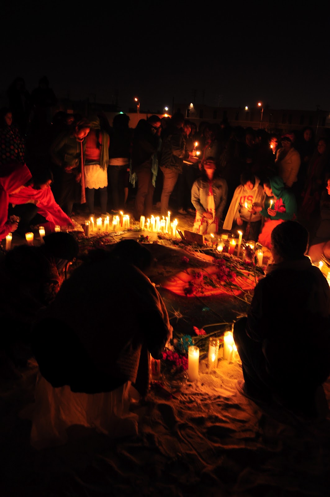 Above us all, was the LUNA, bright and Full. She was hanging there; proud of us as we stood and made our own circle that replicated her natural shape. The Moon had somehow brought us together through the LUNA RIDE, through our needs as Womyn, through our desire to sit in with community, through the words of a Mujer who asked another one to come and share. The Collective known as Mujeres de Maiz, Iron Unicorn, along with Ovarian Psycho-Cycles came together, along with all the other individuals who came independently to make this ceremony happen. I also thought about those coincidental encounters that end up being not so coincidental after all. This was the way in which other Mujeres were brought into the ceremony. For any and all the reasons that can explain why we were there, the conclusion is that it took place and that it was necessary.