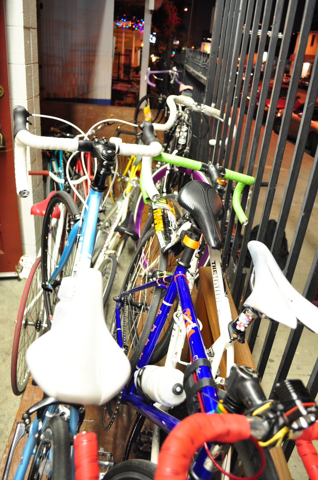 As we gathered, some filled up their tires with air, others shared about their day`s activity/ies while checking their lights and strapping on their helmets. The evening was settling in and the city lights began to replace the sleeping sun. Once all the Mujeres showed up with their Ciclas, placed their Ovarian Psychos stickers on the urban deco, the femdrenaline energy was released and spread as a protective shield around us. We were good to go! ¡VAMONOS a pedalear! Push left, pick-up the stroll right, tight grip on the handle, attentive eyes, crossing avenues, skipping cracks, avoiding pot holes, taking over a whole lane, interrupting the car flow, breathing cold air, make a Left instead, looking for Temple Street, trying to avoid going up hills but forging ahead anyway, cold wind hindering a sweat drop from coming to life, dried mouth, and finally we made it to the event held at AF3IRM-Gabnet where womyn were being honored not only for the ride in life, but also for struggles, their courage and their passions.