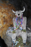 One of our first stops within the mine was at the shrine of The Tio (Uncle). Tio represents the god of the underworld (the devil), as opposed to the god of the above-ground world. In each mine, in a quiet and mostly hidden away spot, there is a place of worship for Tio